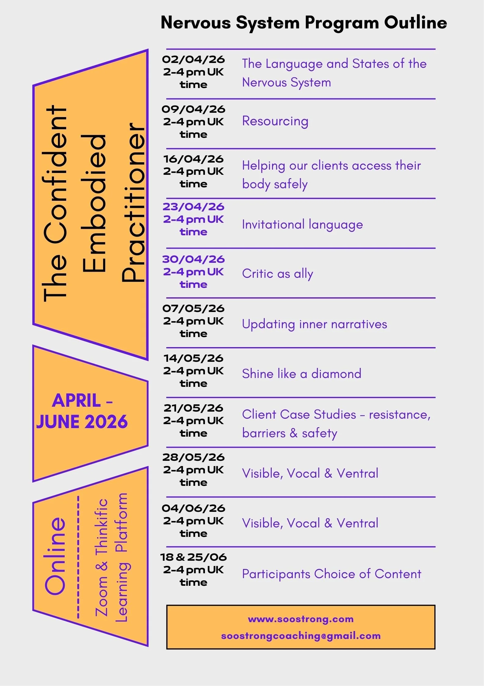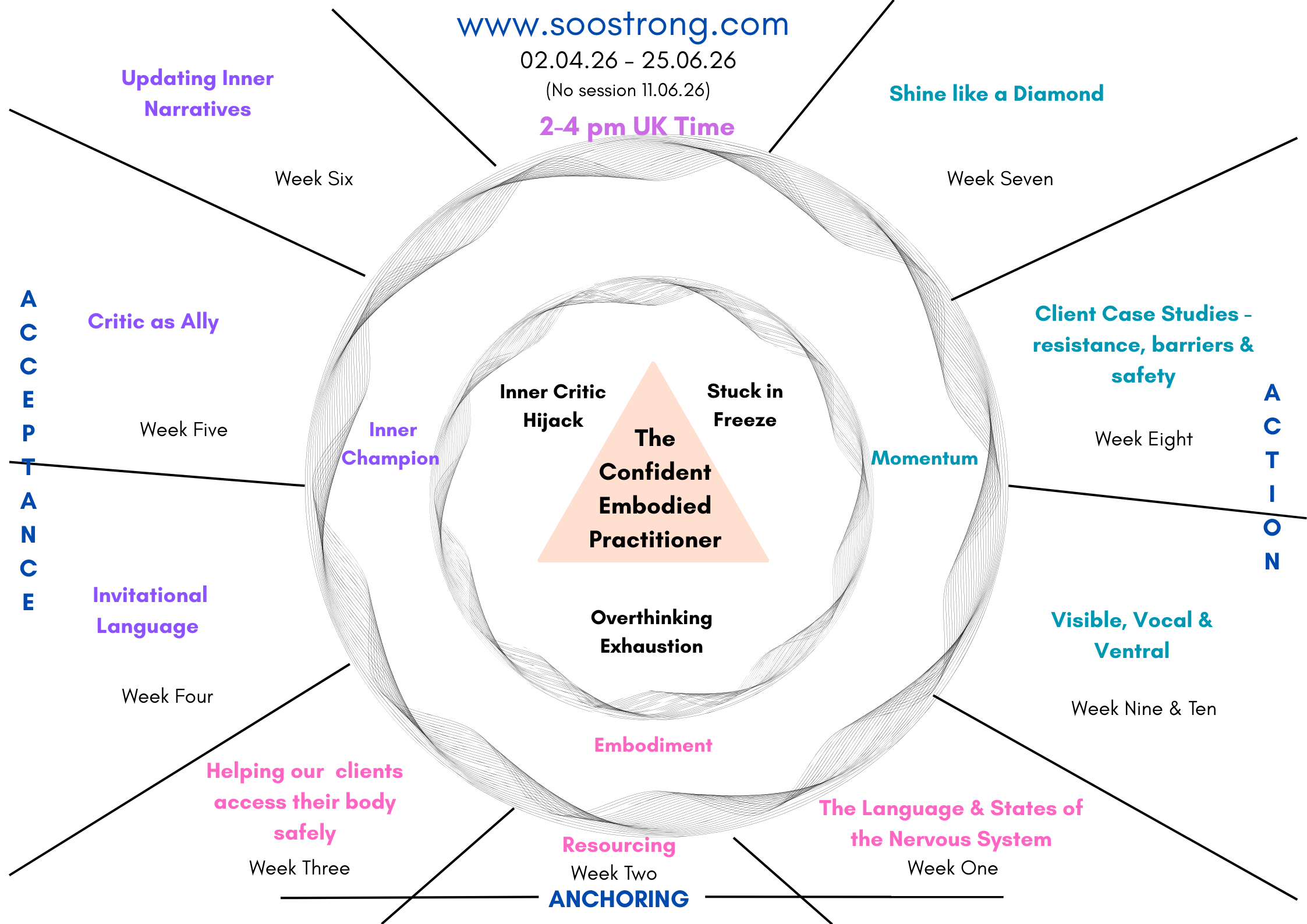 This 12-week embodied programme supports practitioners to build nervous system capacity from the inside out — so confidence and embodiment becomes sustainable, relational, and real